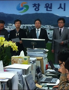 통합청사, 용역으로 결정하는 것이 옳은가? 통합창원시의 가장 민감한 현안은 무엇일까요? 프로야구단 창단, 팔용터널, 행정구역 통합을 상징하는 대형조형물, 수정만 문제, 도시철도 문제 등 여러 산적한 현안이 있지만, 최대, 최고의 현안은 뭐니뭐니해도 '통합시청사' 문제입니다. 이것은 통합 창원시가 출범하기 이전부터, 즉 옛마산, 창원, 진해시가 통합을 할 것인지, 말 것인지 결정하는 단계에서부터 최대, 최고의 쟁점이자 현안이었습니다. 사실, 3개시 행정구역 통합이 추진될 당시 최대, 최고의 쟁점과 현안은 통합시의 명칭문제였습니다. 그런데, 의외로 명칭문제는 쉽게 결론이 나버렸습니다. 최대 쟁점이 될 것이라는 예측이 있었지만, 여론조사 등을 바탕으로하여 통합추진위원회에서 예상보다 훨씬 쉽게 '창원시'로 결정..
